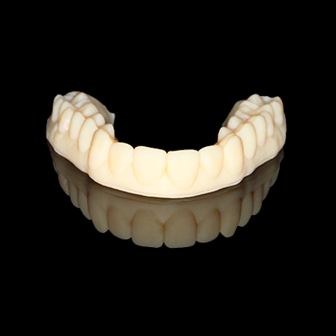 Férula que recrea el estado final del paciente mediante un modelo de previsualización que se completa con composite en el gabinete. Utilizado por el especialista en casos clínicos multidisciplinares como recurso emocional.